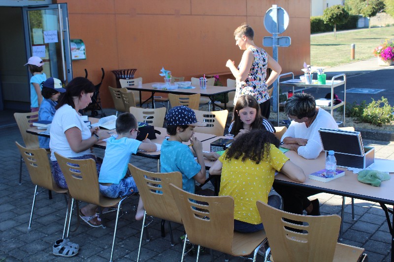 La foire de Delme, c'était du soleil, des sourires, des artistes, des producteurs locaux, des jeux pour les enfants, la tonte des moutons, les chiens-guide, des …. Bon ! Je ne vais pas tout dire, il y en avait tant. .JPG) Une table avait été installée pour l'activité lecture-dessin. Beaucoup de plaisir.