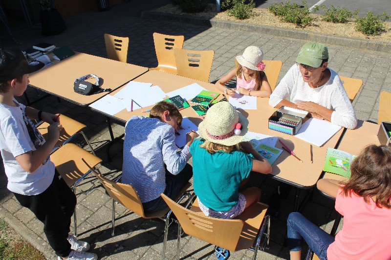 La bibliothèque de Labry a 10 ans et j'ai été invitée à animer mon atelier lecture-dessin. Les jeunes qui ont participé à cet anniversaire sont tous des enfants-lecteurs, habitués aux livres. Très belle fête sous le soleil et dans la bonne humeur.