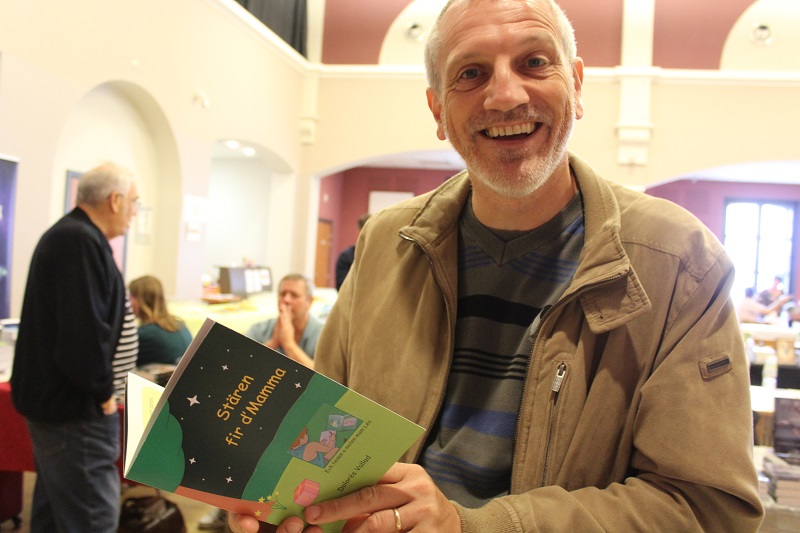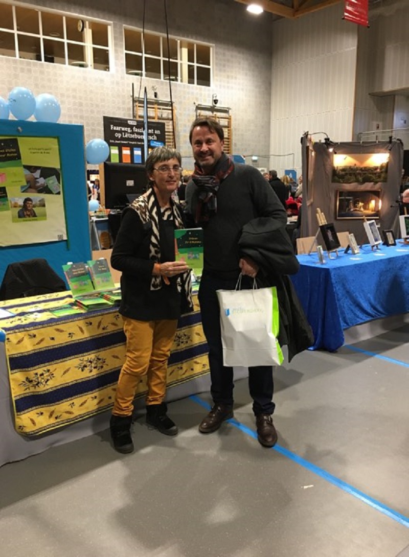 Les 25 ans du salon du livre de Walferdange au Luxembourg se passent à merveille. Samedi, les amoureux des livres étaient là et nous en attendons encore plus ce dimanche. Les enfants sont au rendez-vous. J'ai eu des visites inattendues comme celle de Colette, une dame qui aime connaître la langue du pays qu'elle visite et qui m'a acheté la version espagnole de mon livre. Celle aussi de Sabine, une prof de français du lycée de Piennes qui s'est mise au luxembourgeois avec Nicolas et qui m'a pris la version luxembourgeoise. Xavier Bettel, le premier ministre, fait le tour du salon.. Il lira "Stären fir d'Mamma" à ses filleuls. Il y a un orchestre qui passe dans tous les bâtiments pour mettre l'ambiance. N'hésitez pas à venir vous aussi.