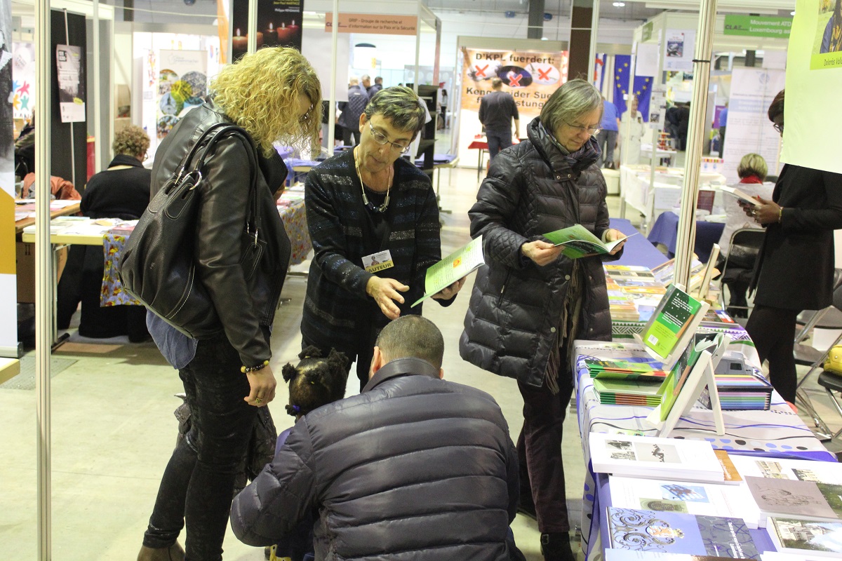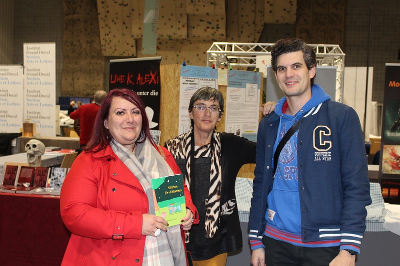 Formidables rencontres avec mes jeunes traducteurs sans qui cette aventure luxembourgeoise n'aurait pas eu le même parfum. Avec les jeunes lecteurs et leurs parents ensuite. Vraiment beaucoup d'émotion lors de ce salon lorsqu'une petite fille sert mon livre contre son cœur, lorsqu'un petit garçon cache le livre de son choix dans son dos de peur que ses parents ne veuillent pas l'acheter. Des parents luxembourgeois ont fait le choix du livre dans cette langue parce que leurs enfants l'apprennent à l'école. Des enfants l'ont choisi parce qu'ils aiment la langue. Le salon de Kirchberg, c'est aussi l'art et les cultures. Venez rencontrer ce dimanche des gens de partout et, en passant, arrêtez-vous à mon stand. Mes jeunes traducteurs en visite au salon du livre ce samedi..jpg) .jpg.)