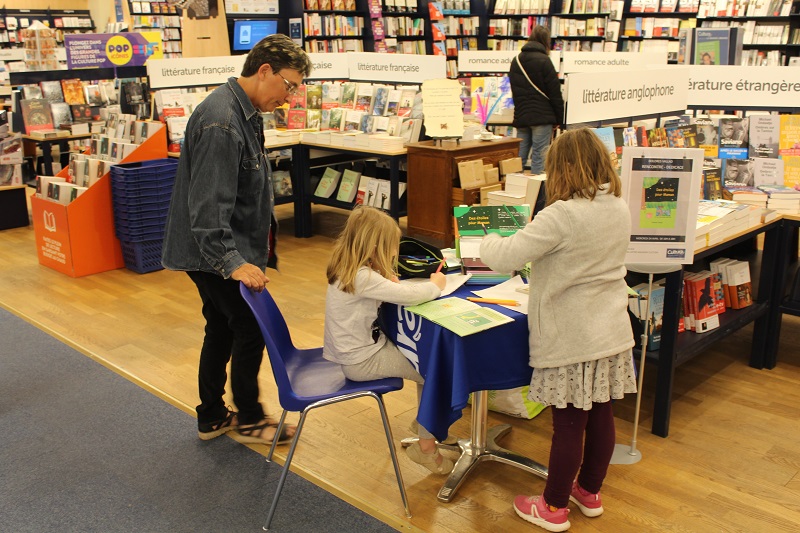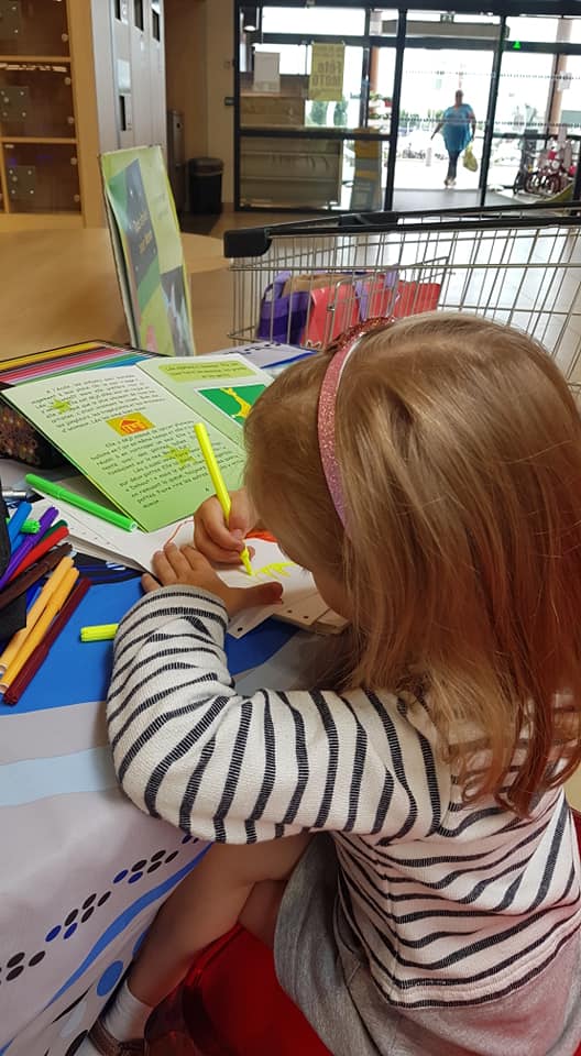 J'étais en dédicace ce samedi 22 juin au Super U de Briey. J 'y ai animé l'atelier dessins pour les enfants toute la journée. Du plaisir avec des jeunes enfants de 6 ans qui ont pu lire mon livre (c'est qu'en sortant du CP, on se débrouille comme des chefs en lecture). Ils ont dessiné leur histoire. J'ai aimé le sport préféré original d'un petit garçon de 5 ans : la musculation. Il a dessiné un personnage avec des altères. Et l'instrument préféré de cette petite fille : le violoncelle. Les enfants racontent qui ils sont et ce qu'ils aiment comme le fait Léa. Magique ! La maman de cette petite fille de 7 ans a pris le livre en anglais. Le grand frère de 10 ans a apprécié de pouvoir lire de l'anglais lui aussi.