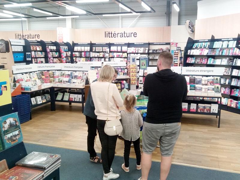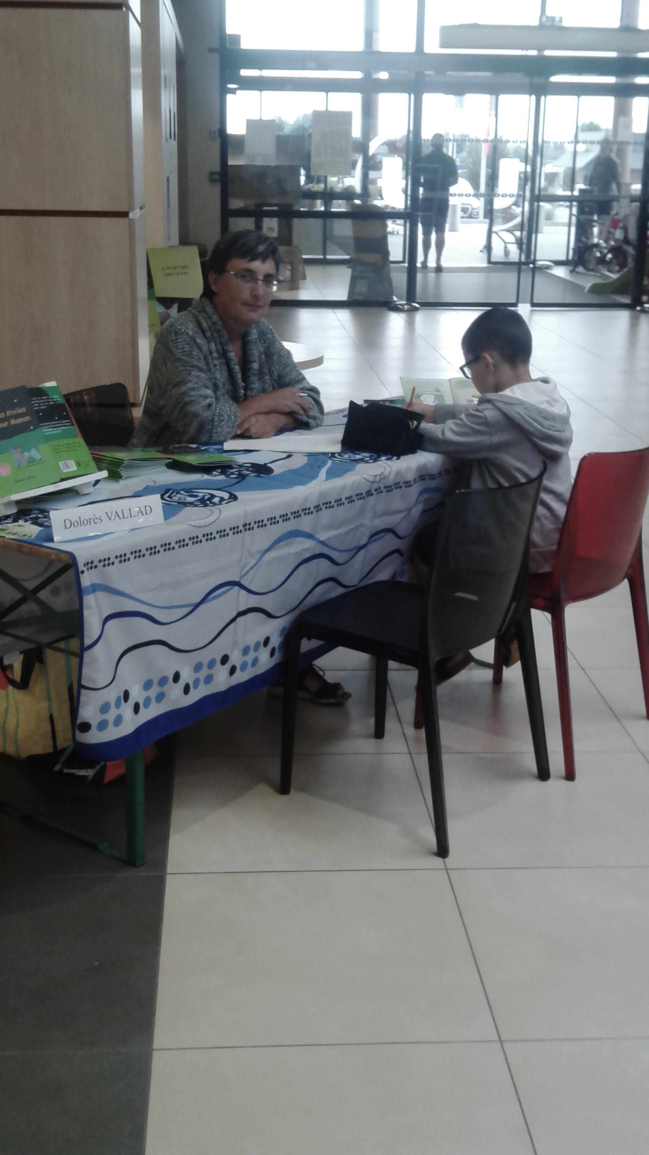 Excellente journée passée au centre culturel du Leclerc d'Hauconcourt. Plein de rencontres avec les enfants, les parents et de nombreux grand-parents. Plein de discussions avec le personnel au petit soin. Bravo à eux pour mettre les auteurs aussi à l'aise. Regardez la belle affiche placée juste à l'entrée : C'est pas génial ça ? A bientôt tous !