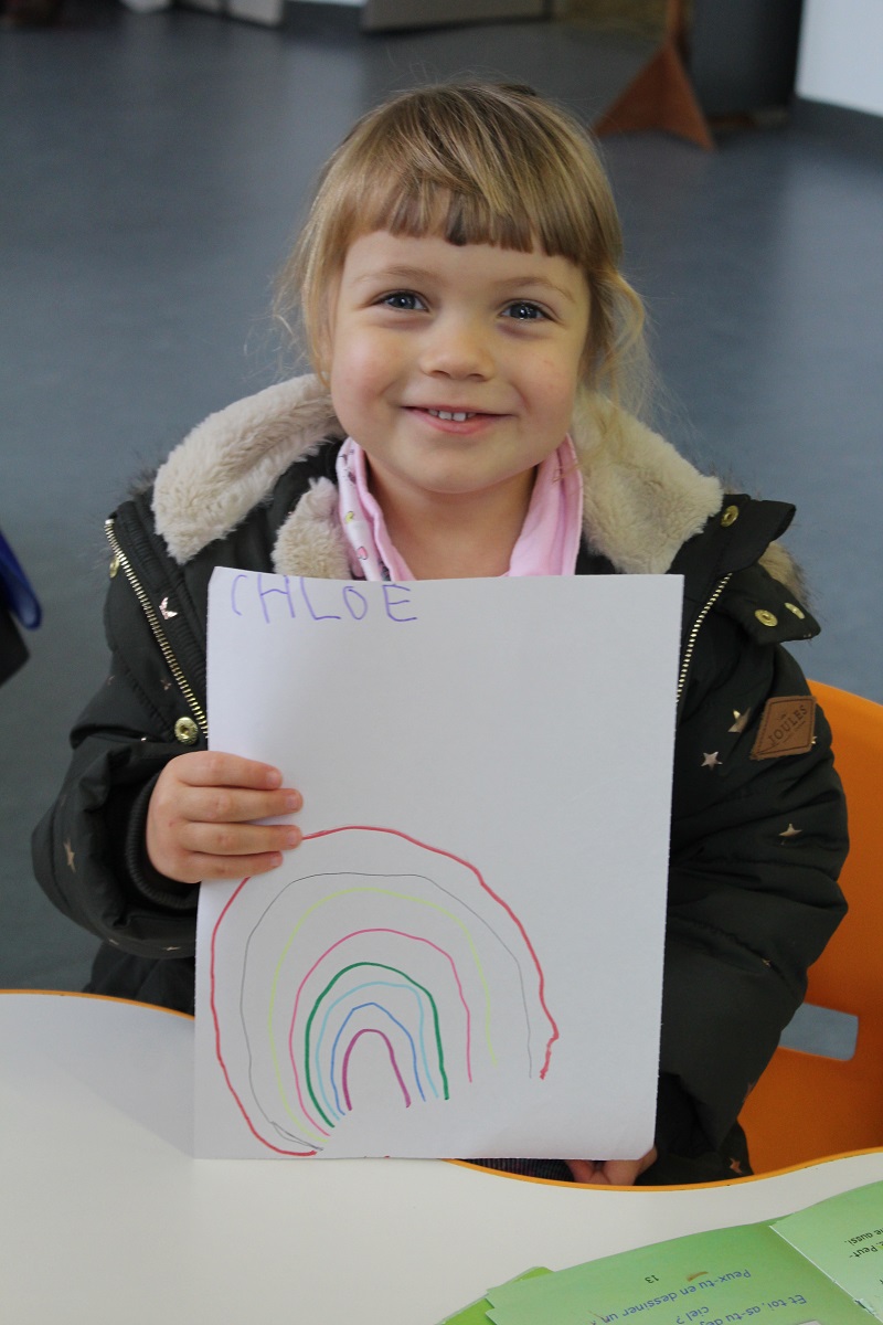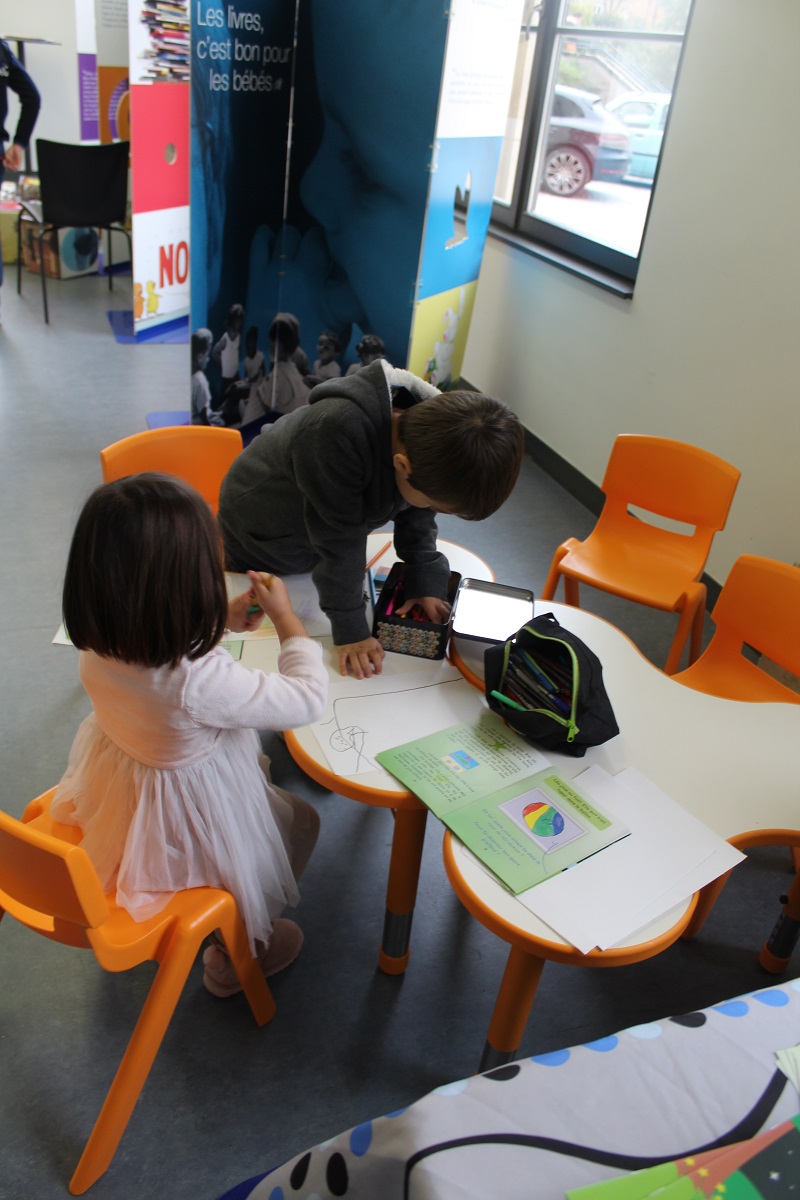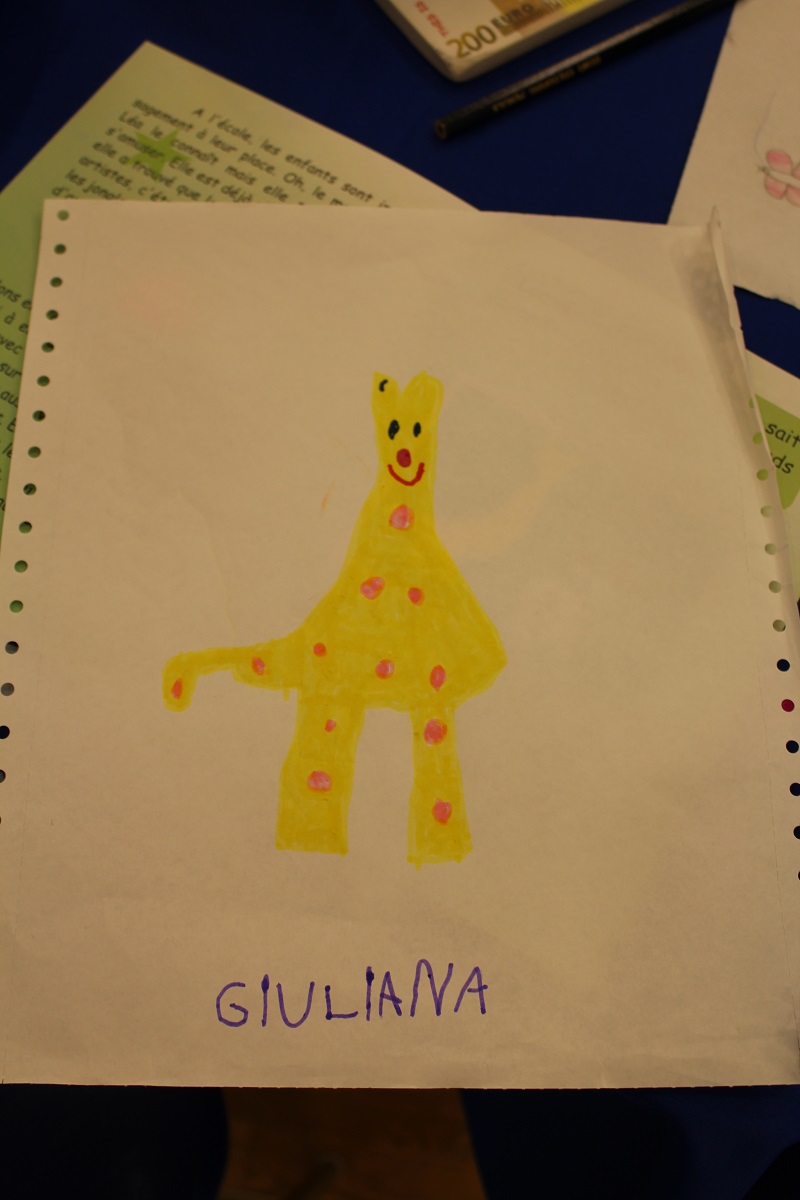J'ai rencontré ma plus fidèle lectrice qui est venue se faire dédicacer mon livre. Quand la maman de Mélanie, 3 ans, me dit : « elle adore votre livre, je lui lis tous les soirs », ça remplit le cœur de bonheur. La petite fille a même souhaité afficher au mur les dessins qu'elle a fait à mon atelier. Quand Livio, 6 ans, lit la page qu'il a choisi et prépare seul le cadre, comme Léa, pour y dessiner la girafe (son animal préféré), je sais pourquoi j'ai écrit ce livre.