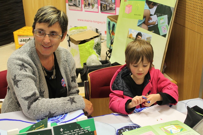 Après-midi intensive à Labry ce dimanche avec des dizaines d'enfants présents à ce beau salon du livre. Les gamins déjà en classe de CP ont fait la connaissance du livre « Des étoiles pour Maman » en le lisant eux-mêmes. C'est qu'après presque une année de lecture, ils s'en sortent comme des chefs. Les plus jeunes eux m'ont écoutée leur raconter les aventures de la petite Léa et ont dessiné, comme d'habitude, ce qui leur plaisait le mieux.