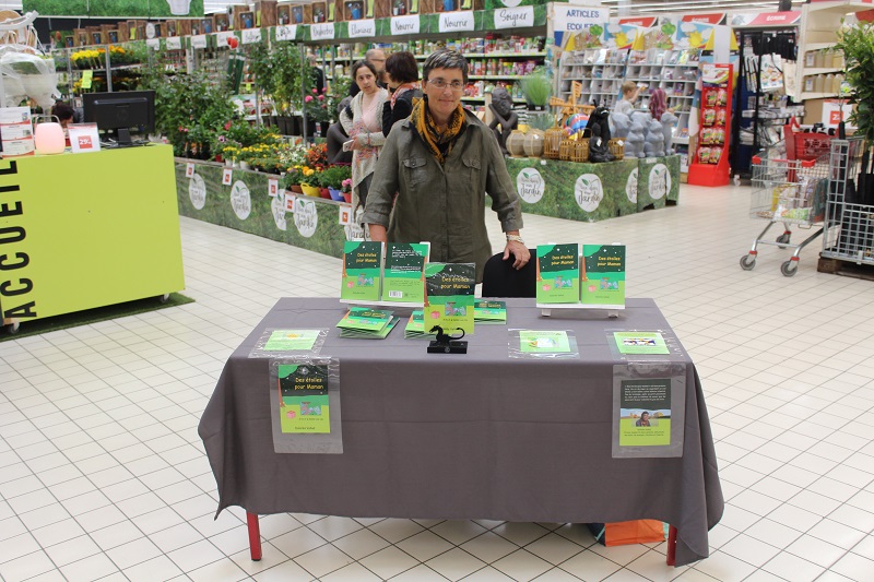 Excellente journée ce samedi à Cora de Moulins-lès-Metz en compagnie de Pier Marx de Sourdon. Les rencontres ont été nombreuses, les discussions variées et passionnées. Beaucoup d'enfants sont partis heureux avec une dédicace sur leur tout nouveau livre. Le moment le plus fort de la journée : une dame était passée devant le stand. Elle s'est arrêtée soudainement et elle est revenue sur ses pas pour venir regarder mon livre. Elle m'a avoué que le titre « Des étoiles pour Maman » l'avait accrochée. Elle a feuilleté le livre et, quand elle a eu fini, elle m'a dit « C'est beau, c'est exactement ça ». Elle m'a confié qu'une personne de sa famille avait perdu sa maman et qu'ils lui avaient dit qu'elle était avec les étoiles. La façon dont j'ai parlé du décès d'une maman l'a beaucoup touchée. Elle m'a demandé de dédicacer le livre à Yoyo.