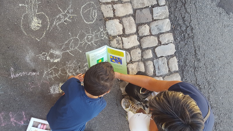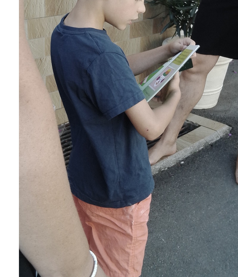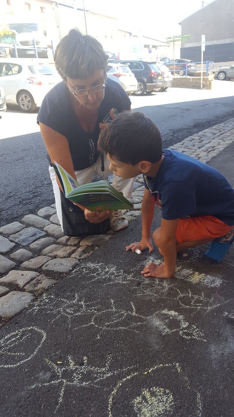 Gabriel a 6 ans. Il termine son année de CP. Alors qu'il dessinait devant chez lui avec des craies de trottoir, je lui ai proposé de regarder mon livre. Il a tout de suite accroché et il a fait tous les dessins demandés sur le trottoir devant sa maison, sans s'occuper des adultes qui discutaient près de lui. .jpg)