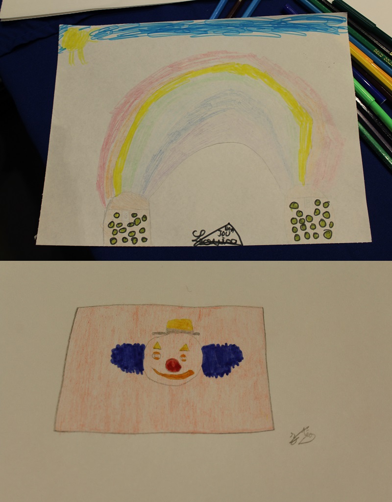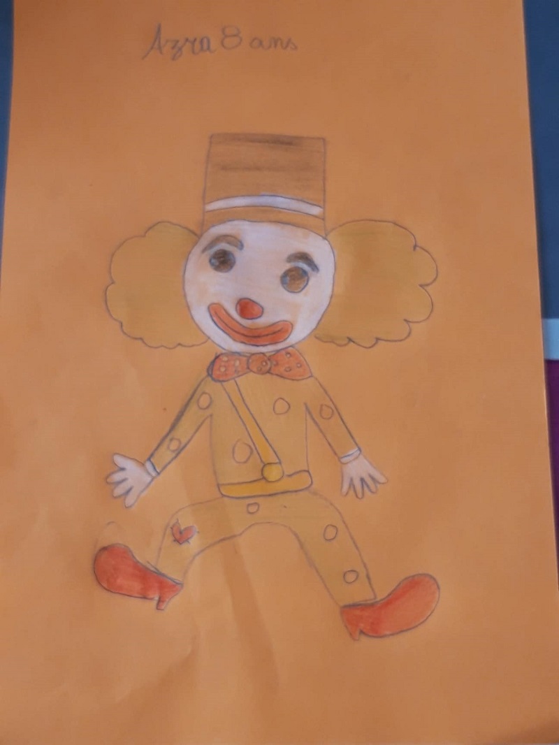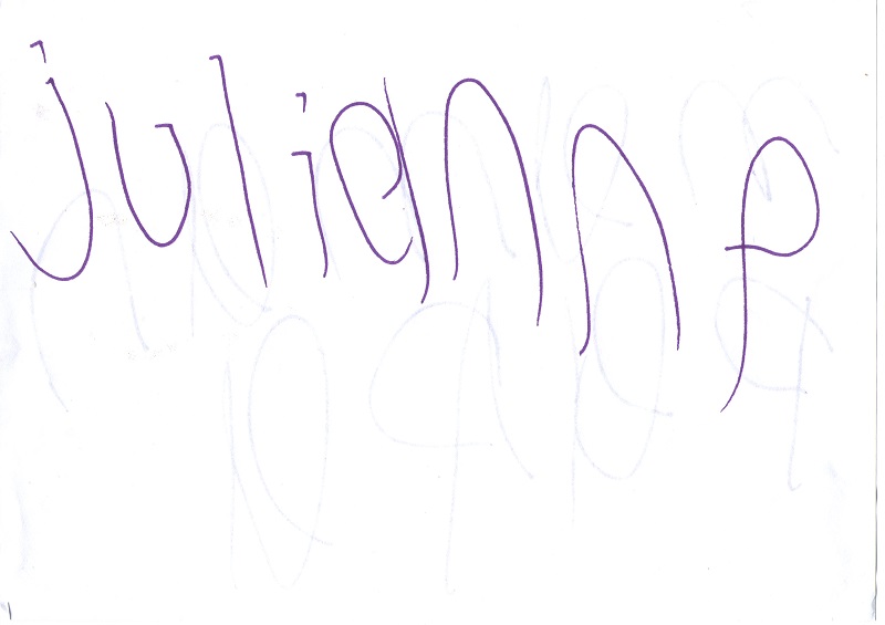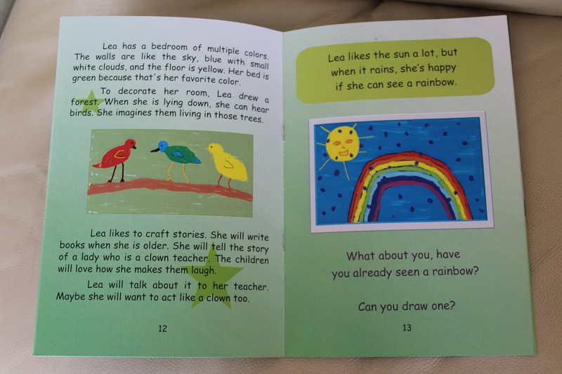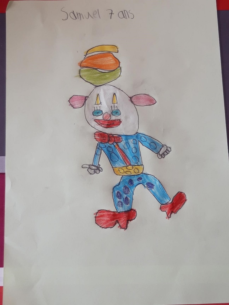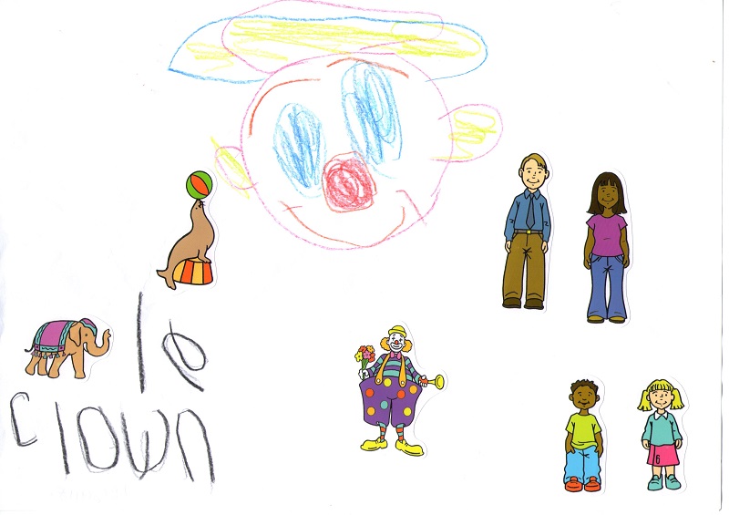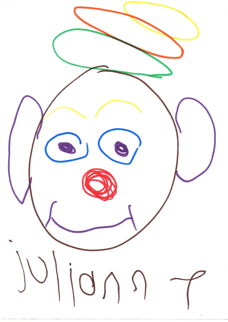 Julianne lit « Des étoiles pour Maman ». Julianne est une jeune autiste de 16 ans. Olga, une animatrice bénévole qui s'occupe d'elle, a été interessée par mon livre pour enfants dans le cadre des apprentissages de Julianne. Voici ses premiers dessins : Les traits des crayons, les cercles du clown, les souvenirs (Julianne est déjà allée au cirque) . Son animal préféré est le papillon. Julianne progresse dans la lecture du livre. Merci beaucoup pour ces beaux dessins !