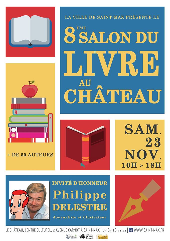 « Le livre au château » s'est déroulé ce samedi au centre culturel de Saint-Max. Ce salon, c'était une cinquantaine d'auteurs dans un bâtiment exceptionnel et avec un excellent accueil . Les enfants et les adultes qui m'ont rendu visite ont pu faire la connaissance de ma petite Léa. Pour mon plus grand plaisir, le livre a été choisi par des lecteurs en français, bien sûr, mais également en anglais et en luxembourgeois. Comme d'habitude, j'ai animé un atelier lecture-dessin avec les petits. Mon prochain salon se déroulera à Dudelange au Luxembourg le 25 janvier.