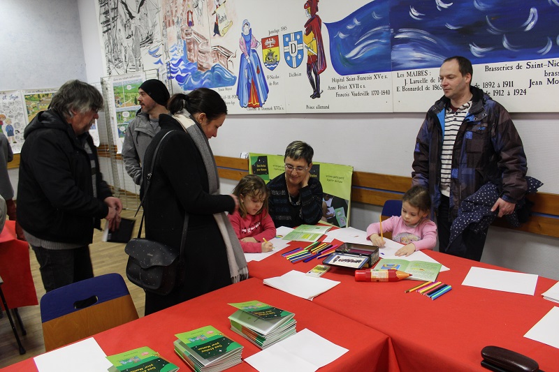 Le salon du livre de Saint-Nicolas-de-Port:Ce dimanche, c'était un flot ininterrompu dans la salle des fêtes, public lecteur qui repartait souvent avec les bras chargés de livres..Le livre « Des étoiles pour maman » a attiré de nombreux enfants qui ont lu et dessiné avec Léa. Les parents ont retrouvé également le plaisir de leur enfance à dessiner....JPG) .JPG) ,