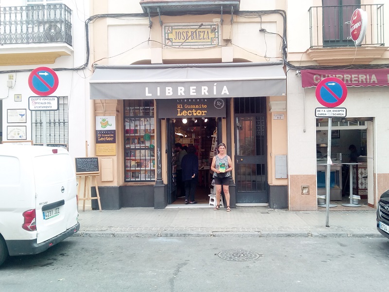 J'ai profité d'une semaine de vacances dans le sud de l'Espagne pour présenter mon livre aux librairies locales. Travail préliminaire à la maison : relevé des adresses de toutes les librairies des villes visitées. Et il y en avait dont certaines qui, hélàs, n'existaient plus. Notre circuit prévoyait Séville, Cadix, Gibraltar et Tarifa. J'ai eu le bonheur de rencontrer la « patronne » de la librairie « El gusanito lector » de Séville qui a reçu ma petite Léa au milieu de ses jolis livres d'enfants. Il s'agit bien sûr de la version espagnole « Estrellas para Mama ». Selon elle, comme selon toutes les personnes rencontrées, qu'elles travaillent ou non dans le milieu de l'enfance ou dans celui de la littérature enfantine, « Des étoiles pour maman » est tout-à-fait original. Même remarque de la patronne de la librairie « El paraiso » que j'ai rencontrée au salon du livre de Cadix. Elle a accepté mon livre de bon cœur et il a été présenté le jour même avec les autres livres de la librairie. Les dates ont été un peu compliquées avec le 8 mai férié (et oui, en Espagne aussi) tout comme le samedi après-midi et le dimanche. Une librairie qui n'existe plus à Gibraltar ! Léa continue son chemin. Formidables vacances ou voyage d'affaires dit-on en plaisantant avec du soleil, des rencontres et des livres.
