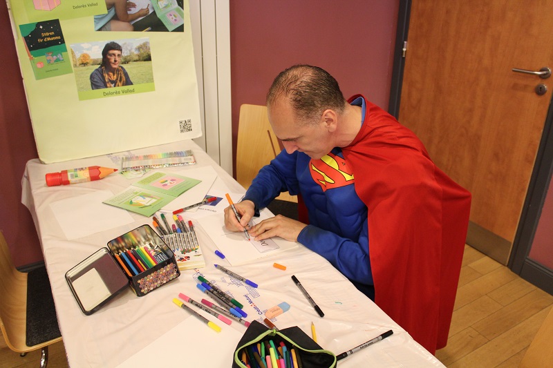 Sympa ce salon du livre de Yutz. Les échanges ont été variés et très originaux. Les enfants ont dessiné avec Léa. Enfin, pas que les enfants. Superman nous a fait le plaisir de participer à l'atelier dessin. Les visiteurs, français et luxembourgeois ont apprécié « Des étoiles pour Maman ». Des nounous travaillant dans des crêches au Luxembourg m'encouragent à les contacter pour présenter mon livre. Hermeline, reine de cœur de Lorraine a pris le temps de le lire. Comme d'autres adultes, elle a eu les larmes aux yeux.Elle l'a beaucoup apprécié. Merci à tous.